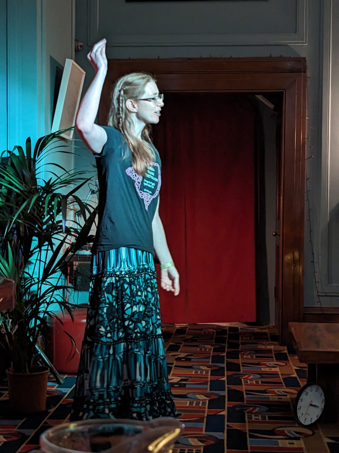 As befitted a show at the Isle of Wight Literary Festival, book merch was available in the form of Lisa’s three collections of folk tales: Botanical Folk Tales of Britain and Ireland, Woodland Folk Tales of Britain and Ireland, River Folk Tales of Britain and Ireland, all published by History Press. But this wasn’t your typical book tour reading. It was a proper storytelling show!