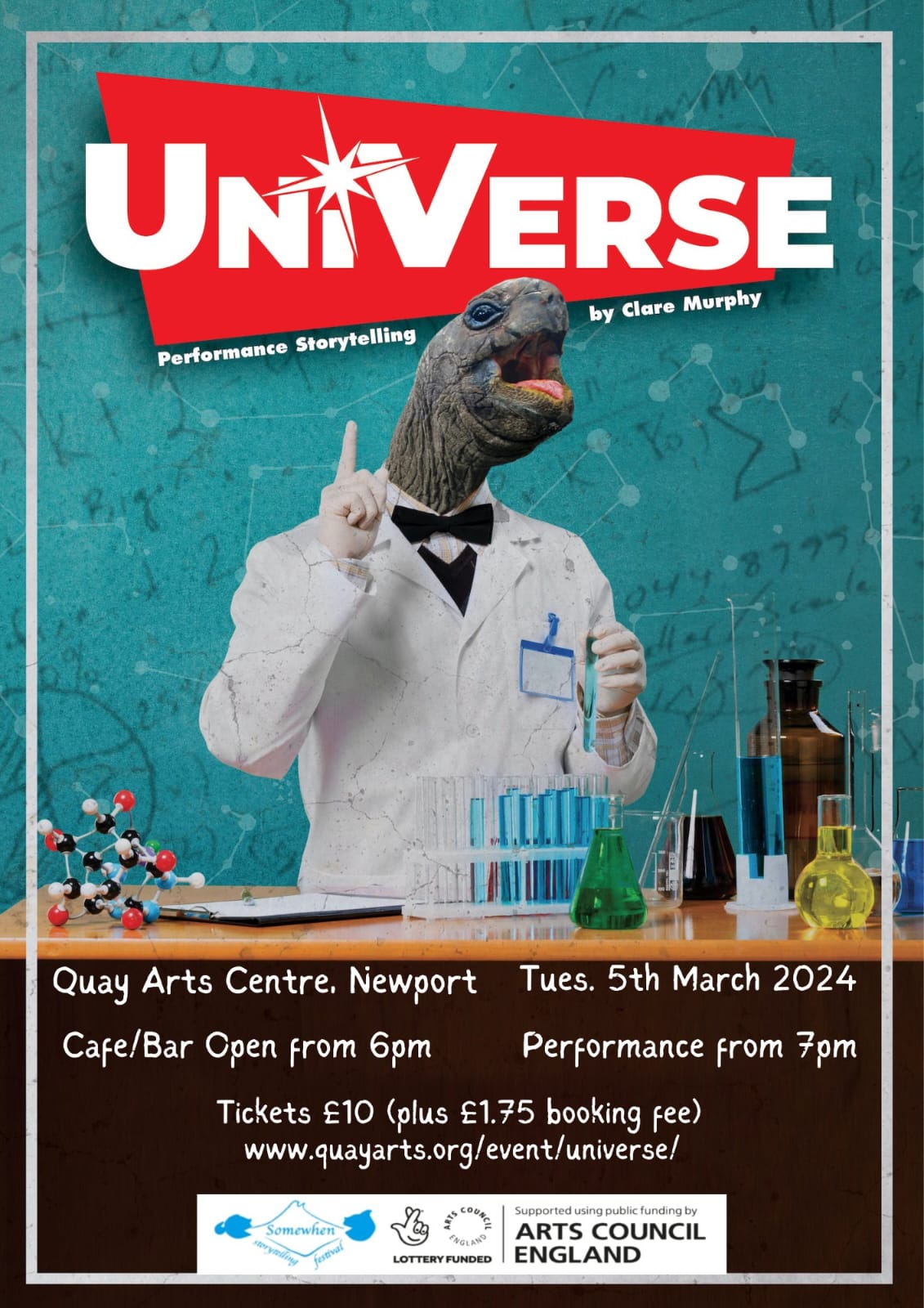 The evening before, (Tuesday 5th March at 7pm) Clare will be telling “UniVerse” in the cafe at Quay Arts. Clare highly recommends workshop participants attend the storytelling performance, as it will be referenced during the workshop.