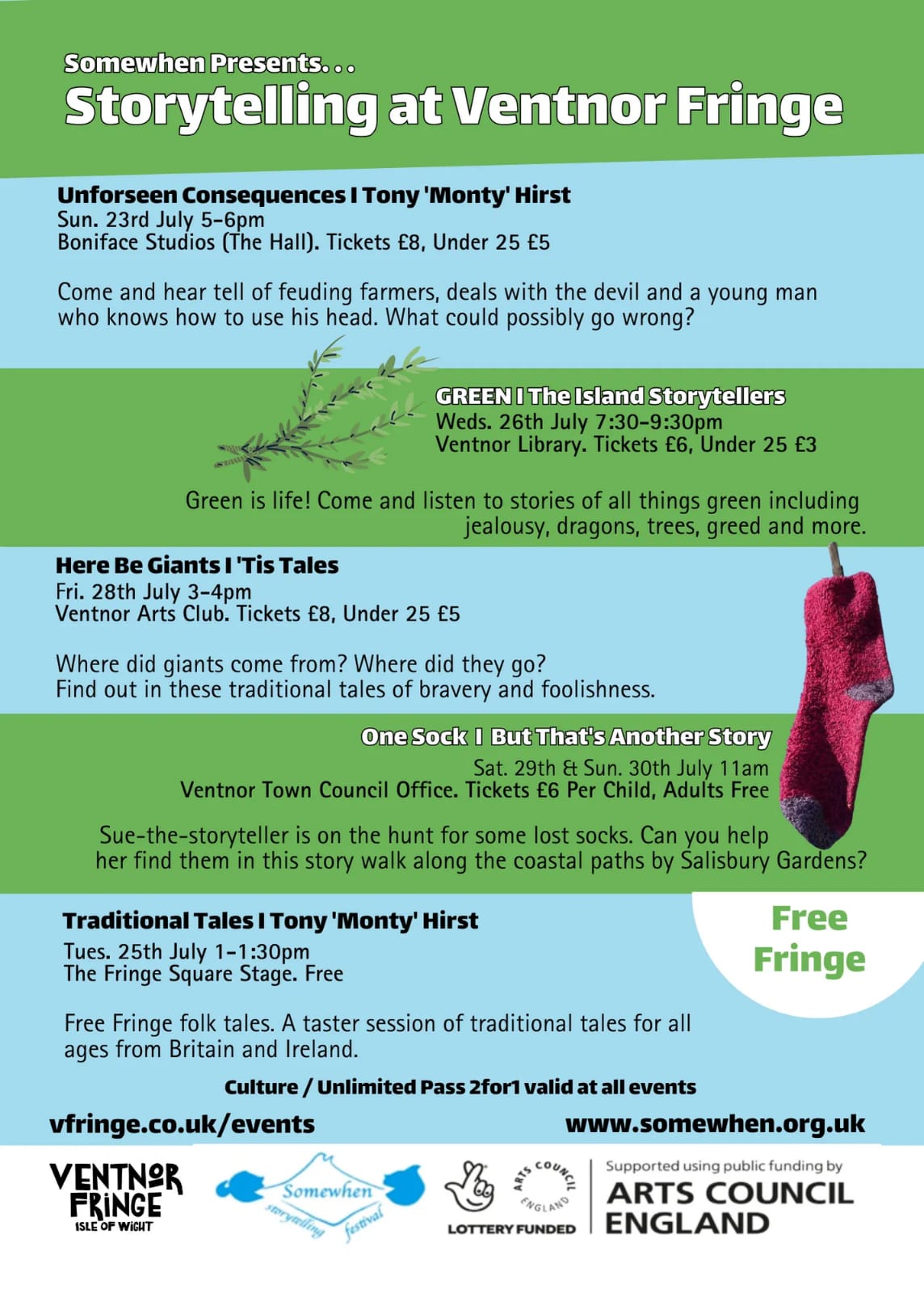 Sue Bailey continued "It has been great being part of Ventnor Fringe. We are very grateful to the organisers for providing a platform for all the performances, whether they be local, national or international. Our storytelling events this week have been part of a year long lottery supported project called ‘Somewhen Storytelling'.